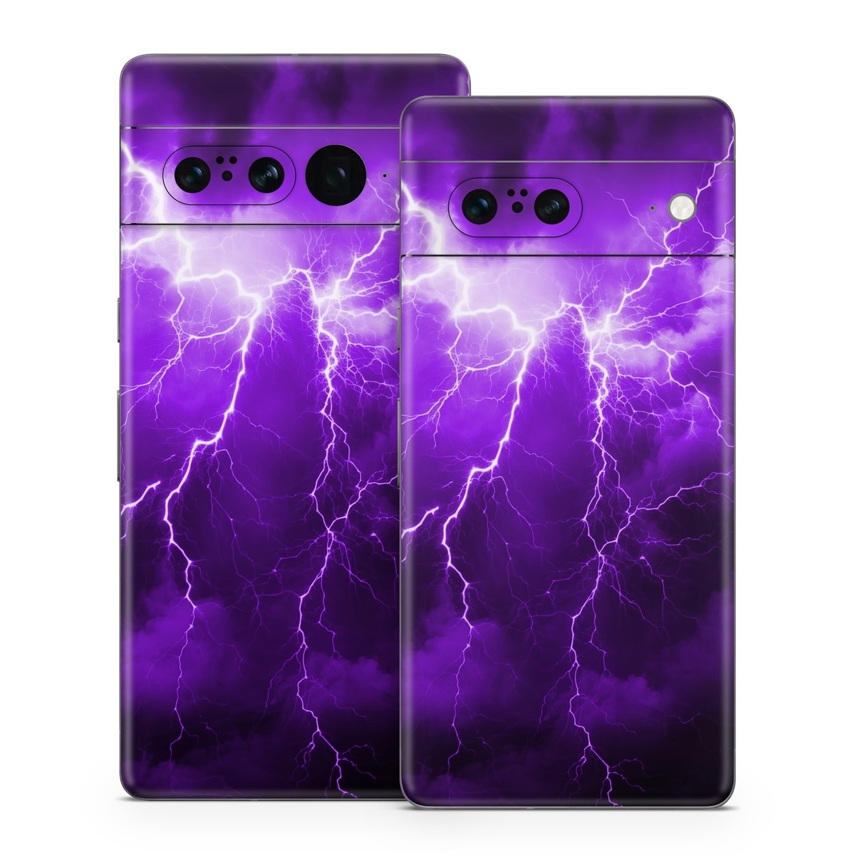 iStyles Google Pixel 7 Series Skin design of Sky, Lightning, Thunder, Atmosphere, Thunderstorm, Daytime, Purple, Light, Cloud, Nature, with black, purple colors, and tagged with patterns, nature, lightning, sky, thunderstorm, storm, electricity.
