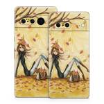 iStyles Google Pixel 7 Series Skin design of Painting, Watercolor paint, Tree, Art, Illustration, Plant, Modern art, Visual arts, Still life, Fictional character, with yellow, red, brown, orange, black, white colors, and tagged with people, nature, objects, fashion.