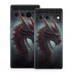 iStyles Google Pixel 7 Series Skin design of Dragon, Fictional character, Mythical creature, Demon, Cg artwork, Illustration, Green dragon, Supernatural creature, Cryptid, with red, gray, blue colors, and tagged with fantasy, animals.