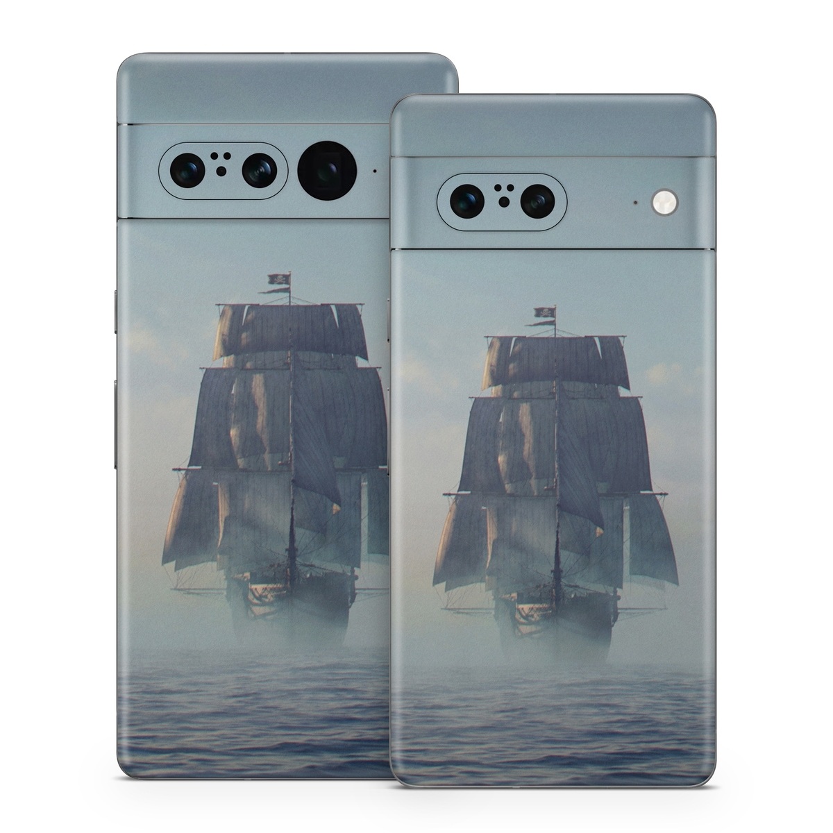 iStyles Google Pixel 7 Series Skin design of Atmospheric phenomenon, Vehicle, Mode of transport, Watercraft, Ship, Sea, with white, blue, black, gray colors, and tagged with objects, nature, boats, fleet, ocean, pirateship, pirates, sailing, ship.