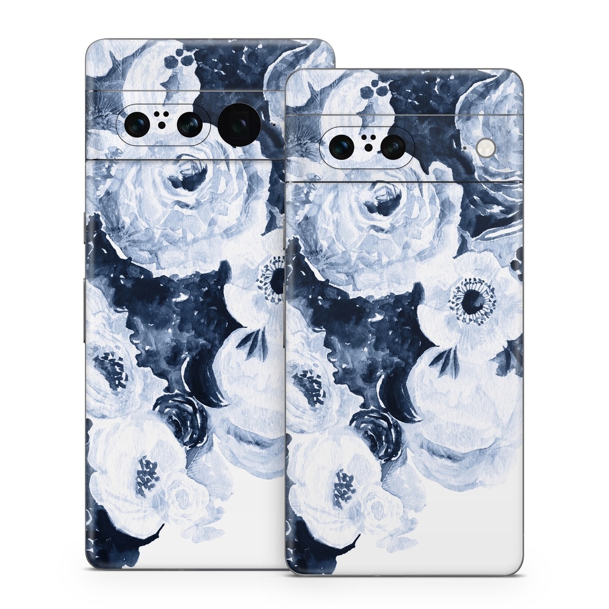 iStyles Google Pixel 7 Series Skin design of White, Flower, Cut flowers, Garden roses, Plant, Bouquet, Rose, Black-and-white, Rose family, Still life, with white, blue colors, and tagged with flowers, blue, bouquet, floral, flowers, watercolor.