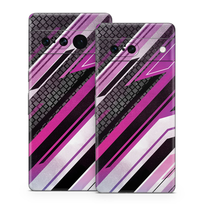 iStyles Google Pixel 7 Series Skin design of Automotive lighting, Hood, Grille, Purple, Automotive design, Automotive exterior, Violet, Motor vehicle, Pink, Line, with black, purple, white, gray, pink colors, and tagged with patterns, patterns, lines, shapes.