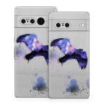 iStyles Google Pixel 7 Series Skin design of Blue, Watercolor paint, Purple, Water, Graphic design, Illustration, Art, Ink, Painting, Electric blue, with gray, white, blue, black, purple colors, and tagged with animals, nature, space, animals, bird, eagle, falcon, hawk, moon, nature, night, stars, watercolor.