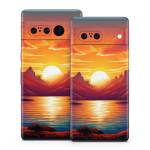 iStyles Google Pixel 7 Series Skin design of Water, Cloud, Sky, Ecoregion, Afterglow, Light, World, Nature, Natural landscape, Mountain, with red, orange, yellow, blue, purple colors, and tagged with nature, mountain, landscape, clouds, sun, sunset, reflection, lake, sea.