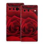 iStyles Google Pixel 7 Series Skin design of Red, Garden roses, Rose, Petal, Flower, Nature, Floribunda, Rose family, Close-up, Plant, with black, red colors, and tagged with flowers, patterns, photos.