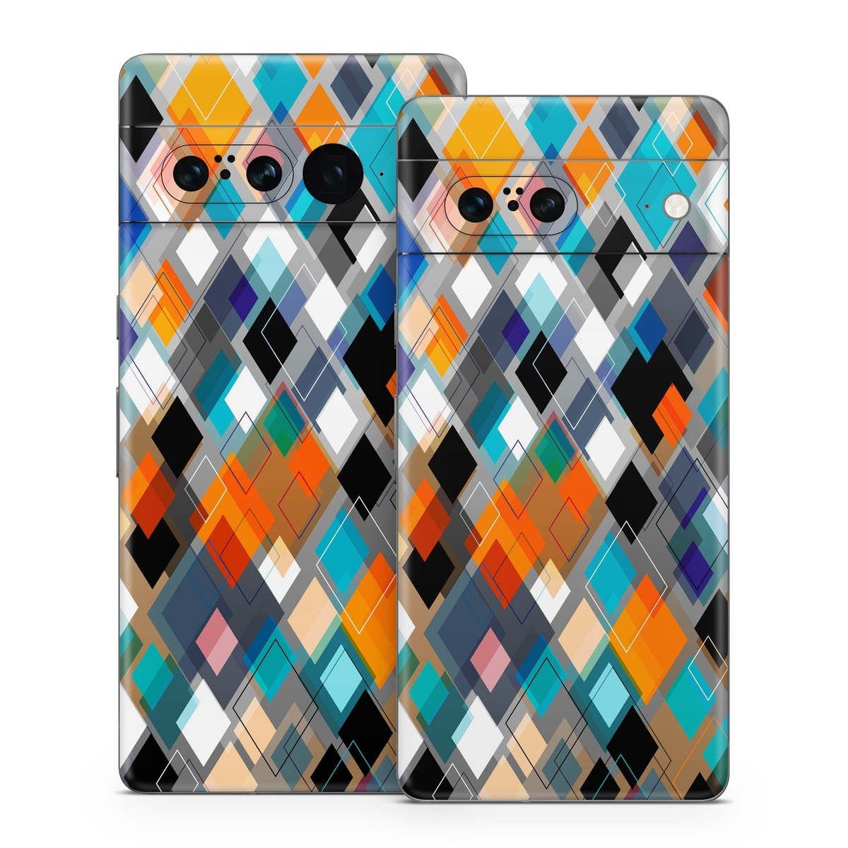 iStyles Google Pixel 7 Series Skin design of Pattern, Line, Design, Colorfulness, Plaid, Tints and shades, Textile, Symmetry, Square, with black, blue, red, orange, white colors, and tagged with patterns.