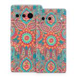 iStyles Google Pixel 7 Series Skin design of Pattern, Paisley, Motif, Visual arts, Design, Art, Textile, Psychedelic art, with orange, yellow, blue, red colors, and tagged with patterns, flowers.