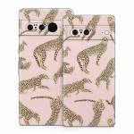 iStyles Google Pixel 7 Series Skin design of Hair, Vertebrate, White, Organ, Textile, Organism, Mammal, Felidae, Font, Line, with pink, yellow, black colors, and tagged with patterns, animals, cheetah, acinonyx, jubatus.
