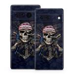 iStyles Google Pixel 7 Series Skin design of Skull, Bone, Skeleton, Illustration, Outerwear, T-shirt, Flag, Art, with black, gray, red colors, and tagged with skulls, flags, objects.