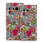 iStyles Google Pixel 7 Series Skin design of Pattern, Drawing, Visual arts, Art, Design, Doodle, Floral design, Motif, Illustration, Textile, with gray, red, black, green, purple, blue colors, and tagged with flowers.