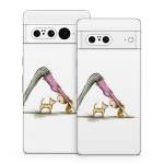 iStyles Google Pixel 7 Series Skin design of Drawing, Illustration, with white, pink, black, white, brown, yellow colors, and tagged with people, fineart, fashion, animals, animals, dog, fashion, fitness, yoga.