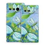 iStyles Google Pixel 7 Series Skin design of Green, Blue, Leaf, Plant, Pattern, Tree, Design, Organism, Branch, Flower, with gray, blue, green, purple colors, and tagged with nature, patterns, animals.