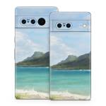 iStyles Google Pixel 7 Series Skin design of Body of water, Tropics, Nature, Natural landscape, Shore, Coast, Caribbean, Sea, Tree, Beach, with gray, black, blue, green colors, and tagged with nature, fineart.
