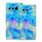iStyles Google Pixel 7 Series Skin design of Blue, Turquoise, Aqua, Pattern, Dye, Design, Sky, Electric blue, Art, Watercolor paint, with blue, purple colors, and tagged with abstract, patterns.