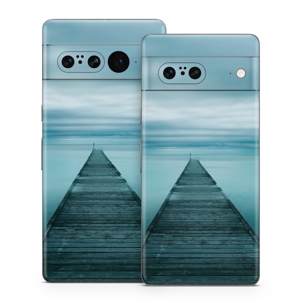 iStyles Google Pixel 7 Series Skin design of Sea, Water, Horizon, Sky, Blue, Ocean, Daytime, Calm, Fixed link, Symmetry, with black, blue, gray colors, and tagged with photos, nature.