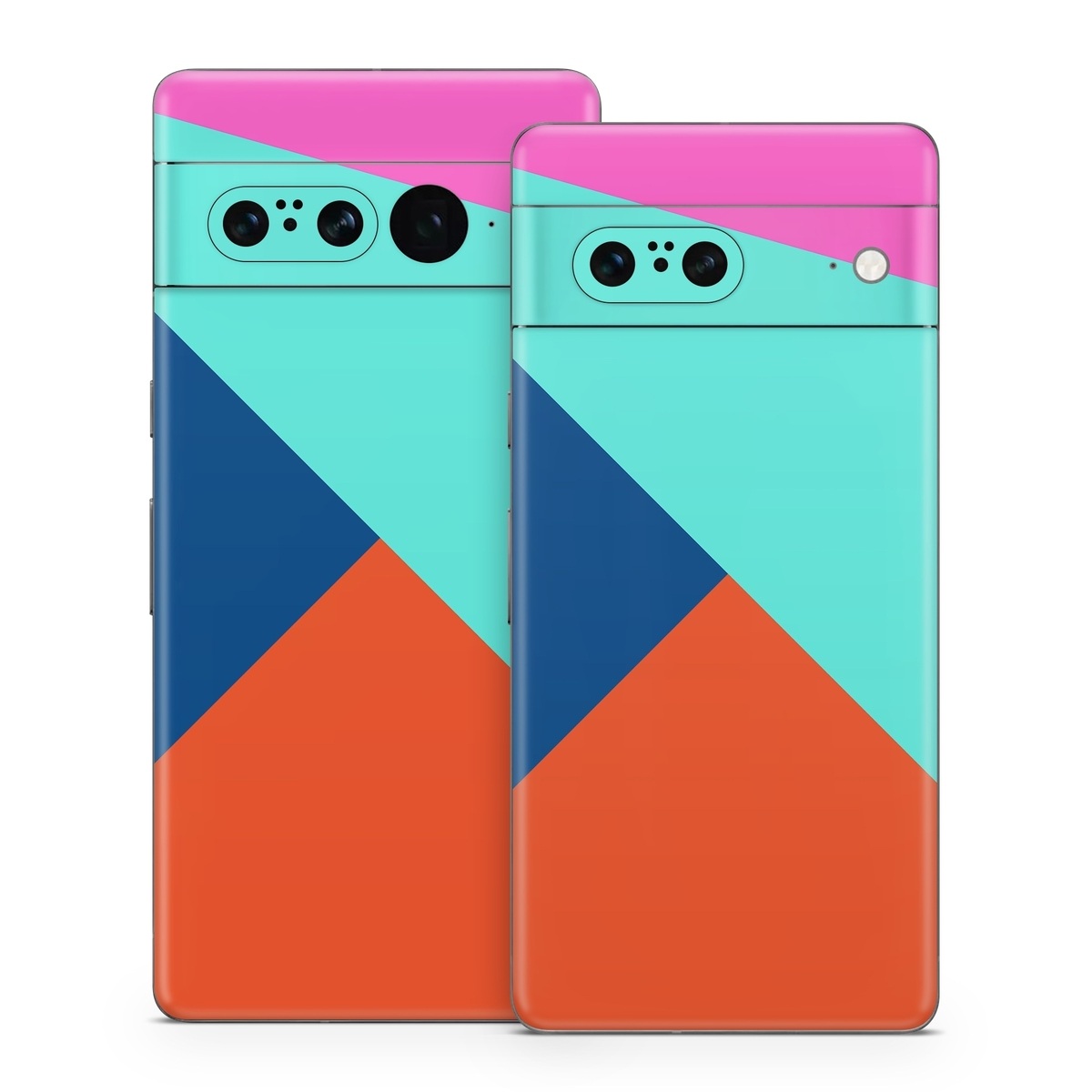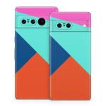 iStyles Google Pixel 7 Series Skin design of Blue, Colorfulness, Turquoise, Line, Azure, Triangle, Pattern, Graphic design, Magenta, with blue, pink, orange, red colors, and tagged with patterns, block, blocking, color, colorblock, geometric, shape, simple.