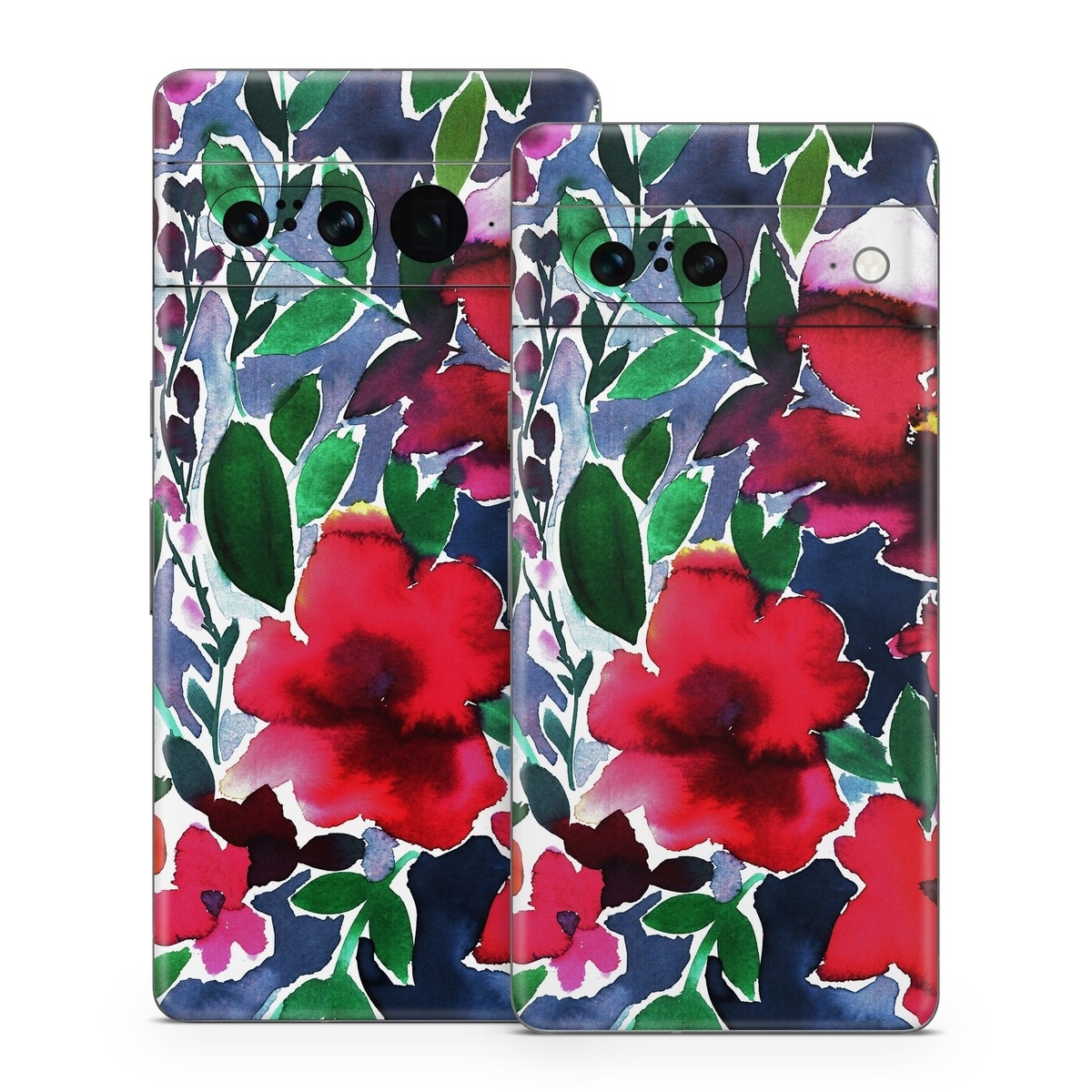 iStyles Google Pixel 7 Series Skin design of Flower, Petal, Red, Plant, Pattern, Pink, Purple, Flowering plant, Botany, Design, with red, green, pink, blue colors, and tagged with patterns, flowers, flowers, watercolor, watercolorflowers.