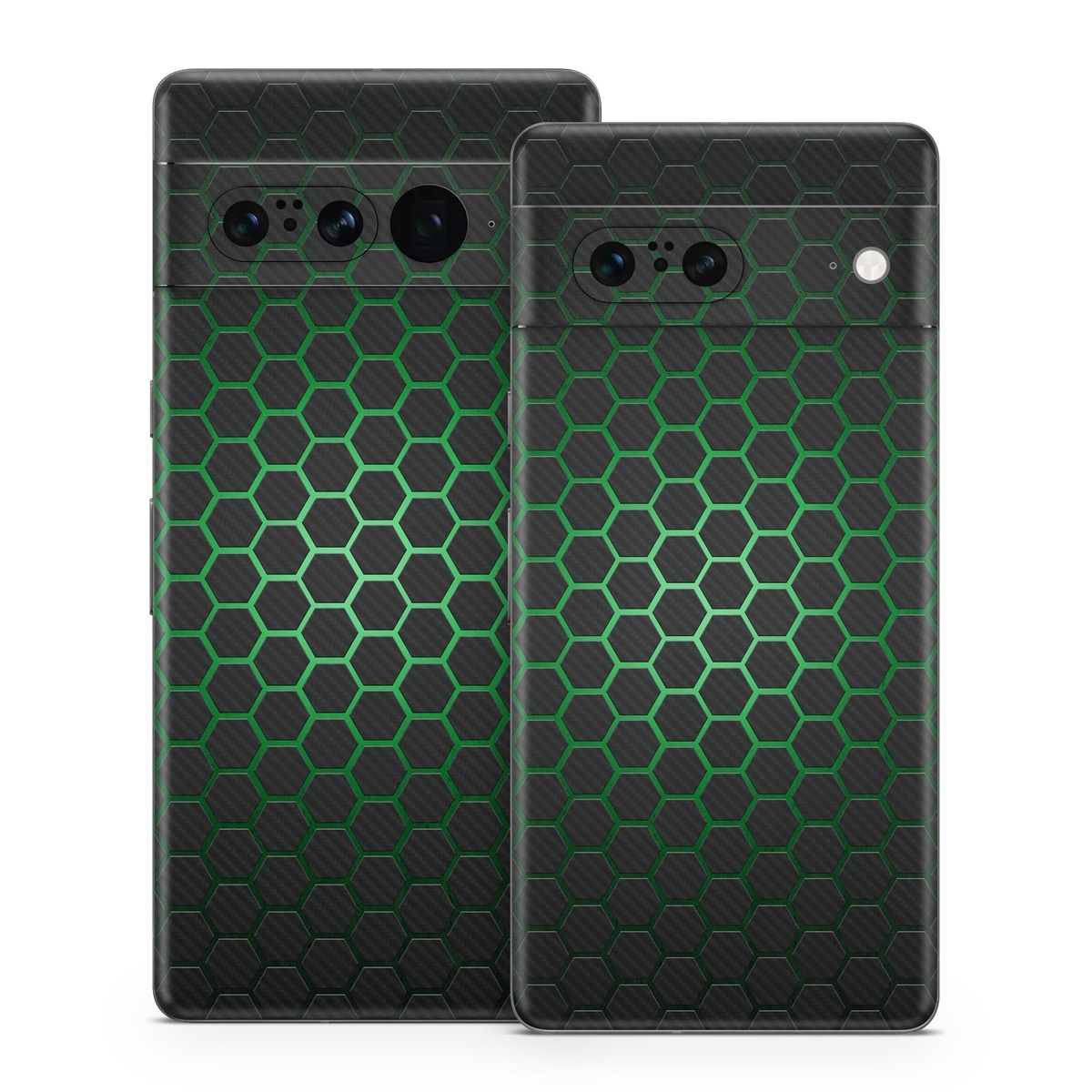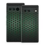 iStyles Google Pixel 7 Series Skin design of Pattern, Metal, Design, Carbon, Space, Circle, with black, gray, green colors, and tagged with lookslike, space, fantasy, drones, geometric, hexagon, tech.