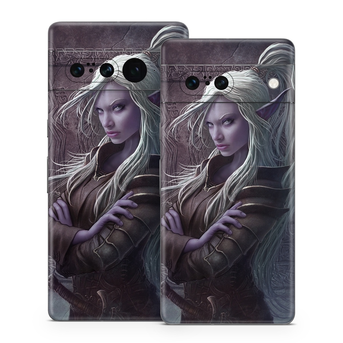 iStyles Google Pixel 7 Series Skin design of Cg artwork, Beauty, Purple, Lady, Illustration, Fictional character, Long hair, Photography, Art, Portrait, with black, gray, purple colors, and tagged with fantasy, people, elf, purple.