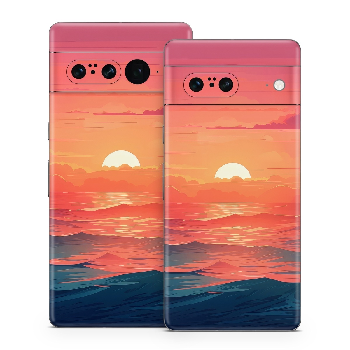 iStyles Google Pixel 7 Series Skin design of Cloud, Sky, Atmosphere, Daytime, Afterglow, Ecoregion, Nature, Dusk, Water, Orange, with blue, red, yellow, orange, pink, black, purple colors, and tagged with nature, sea, landscape, sunset, waves.
