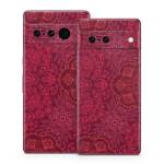 iStyles Google Pixel 7 Series Skin design of Red, Pattern, Pink, Magenta, Purple, Maroon, Violet, Textile, Design, Wallpaper, with red, black colors, and tagged with patterns, flowers, lookslike, floral, flowers, mandala, red, tapestry.