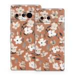 iStyles Google Pixel 7 Series Skin design of Flower, Plant, Textile, Botany, Petal, Gesture, Line, Font, Groundcover, Art, with brown, white, gray, black colors, and tagged with patterns, flowers, spring, white, flowers.