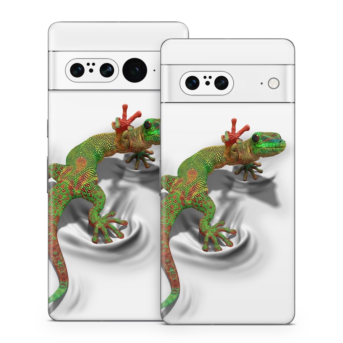 iStyles Google Pixel 7 Series Skin design of Lizard, Reptile, Gecko, Scaled reptile, Green, Iguania, Animal figure, Wall lizard, Fictional character, Iguanidae, with white, gray, black, red, green colors, and tagged with animals.