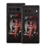 iStyles Google Pixel 7 Series Skin design of Illustration, Fictional character, Graphic design, Supernatural creature, Demon, Cg artwork, Art, Mythology, Angel, Wing, with black, white, red colors, and tagged with signs, people, fantasy, animals.