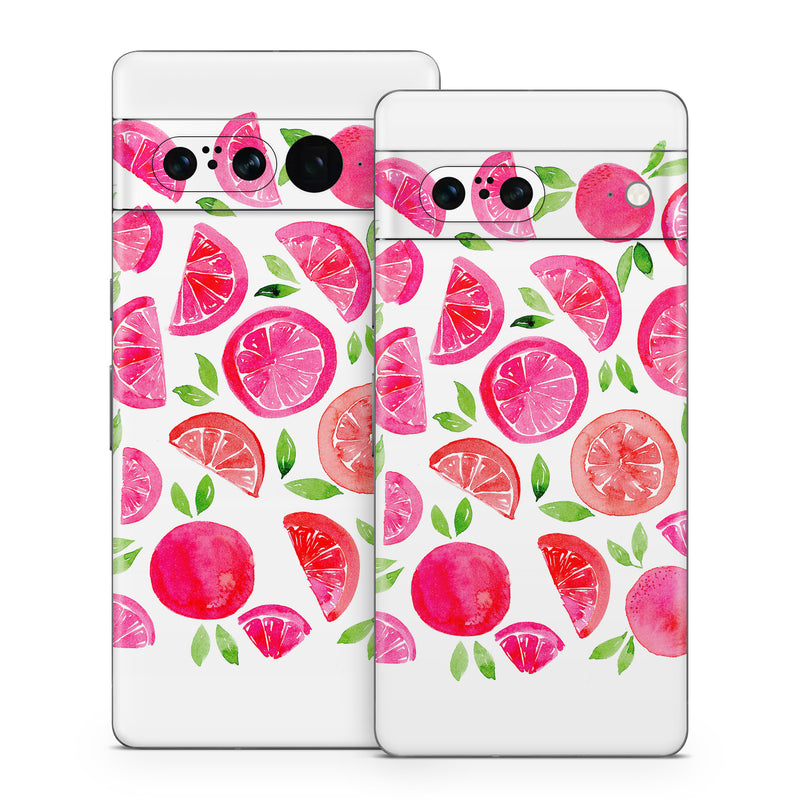 iStyles Google Pixel 7 Series Skin design of Food, Plant, Fruit, Botany, Natural foods, Seedless fruit, Ingredient, Red, Font, Citrus, with pink, green, red, white colors, and tagged with patterns, objects, fruit, citrus.