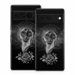iStyles Google Pixel 7 Series Skin design of Head, Eye, Flash photography, Painting, Headgear, Art, Font, Snout, Darkness, Owl, with black, white, gray colors, and tagged with animals, signs, flowers, people, objects, fantasy, cat, crystal, ball, roses.