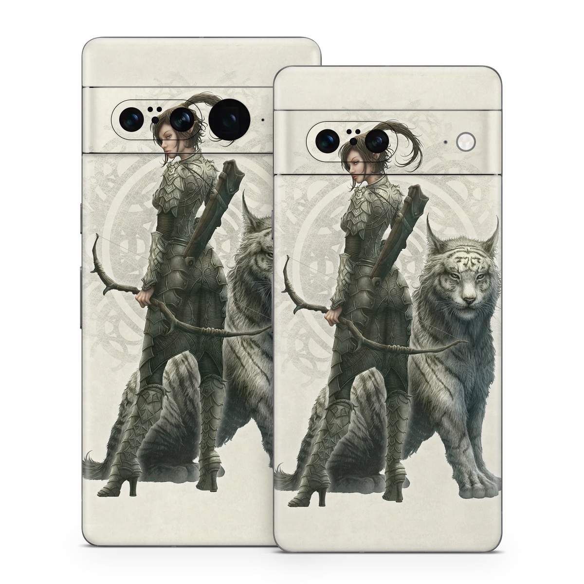iStyles Google Pixel 7 Series Skin design of Illustration, Fictional character, Drawing, Woman warrior, Art, Mythology, Sketch, with gray, black, pink, yellow, green colors, and tagged with fantasy, animals, objects, people.