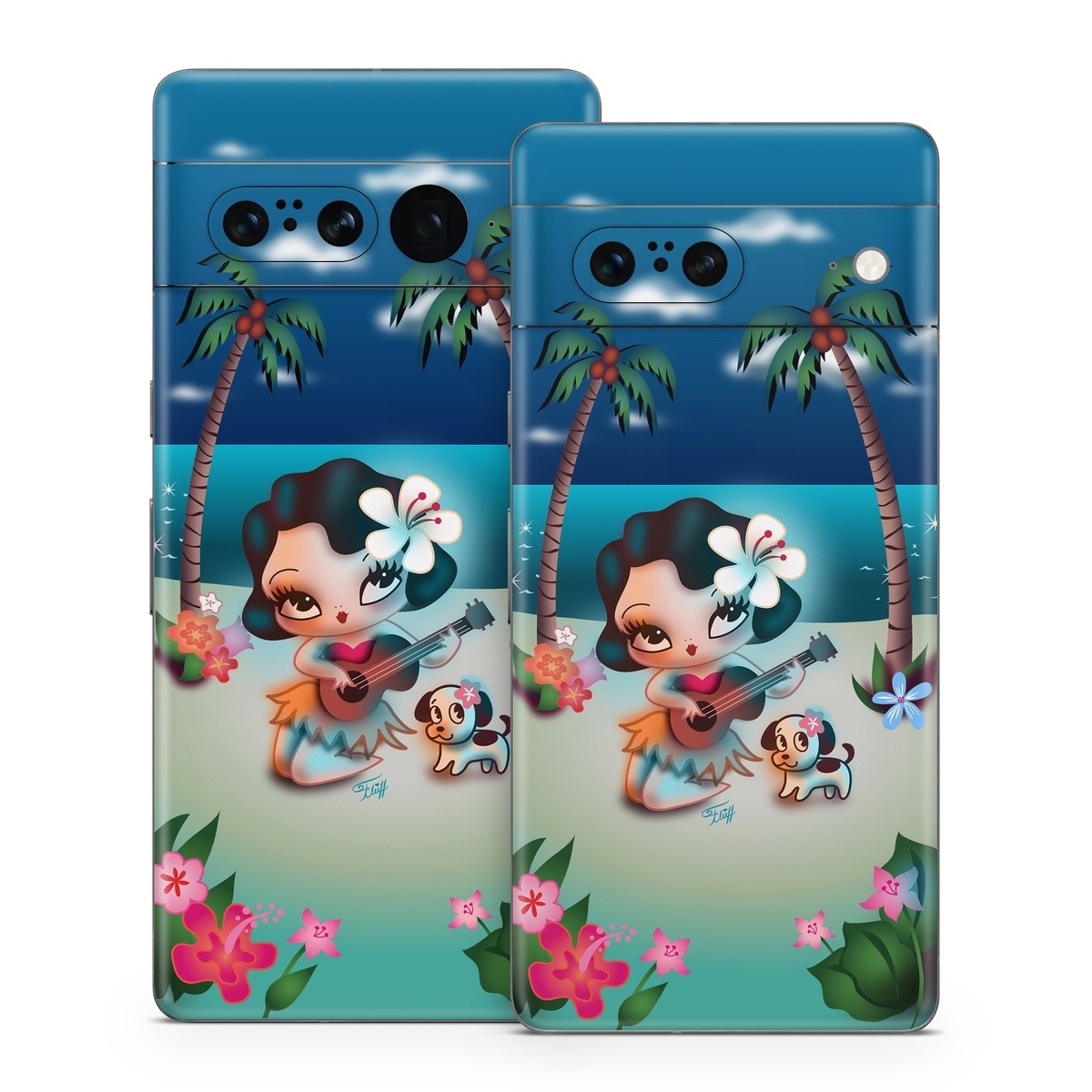 iStyles Google Pixel 7 Series Skin design of Cartoon, Animated cartoon, Illustration, Animation, Fictional character, Plant, Art, Clip art, with blue, white, brown, pink, green, yellow, red colors, and tagged with animals, objects, flowers, nature, people, beach, cartoon, flower, flowers, hawaii, hawaiian, hula, ocean, pinup, pinupgirl, tropic, tropical.