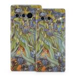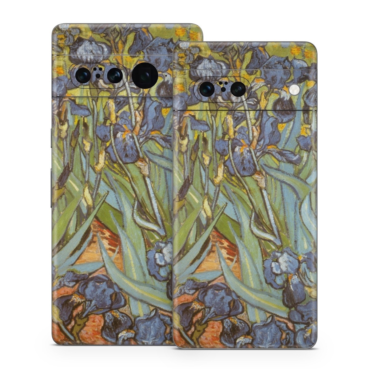 iStyles Google Pixel 7 Series Skin design of Painting, Plant, Art, Flower, Iris, Modern art, Perennial plant, with gray, green, black, red, blue colors, and tagged with fineart, flowers.