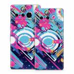 iStyles Google Pixel 7 Series Skin design of Colorfulness, Font, Line, Material property, Art, Magenta, Pattern, Electric blue, Circle, Graphics, with blue, pink, black, white, orange colors, and tagged with abstract, abstract, circles, lines, dripping.