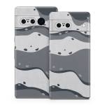 iStyles Google Pixel 7 Series Skin design of White, Pattern, Water, Design, Illustration, Black-and-white, Metal, Drawing, Style, with black, white, gray colors, and tagged with patterns, military, camo, grey, steel.