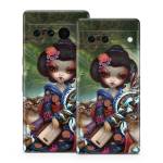 iStyles Google Pixel 7 Series Skin design of Cat, Felidae, Whiskers, Illustration, Art, Small to medium-sized cats, Doll, Kitten, Norwegian forest cat, Fawn, with black, white, red, brown, blue, green, pink, purple colors, and tagged with people, animals, flowers, nature, objects, fantasy, animals, cats, fantasy, kimono.