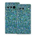 iStyles Google Pixel 7 Series Skin design of Blue, Plant, Glitter, with blue, green, white colors, and tagged with patterns, abstract, bright, colors, pattern.