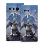 iStyles Google Pixel 7 Series Skin design of Sky, Cloud, Atmosphere, Rock, Wolf, Photography, Cg artwork, Illustration, Mountain, Mythology, with white, blue, gray, brown colors, and tagged with animals, nature, animals, dogs, pack, wolf, wolves.