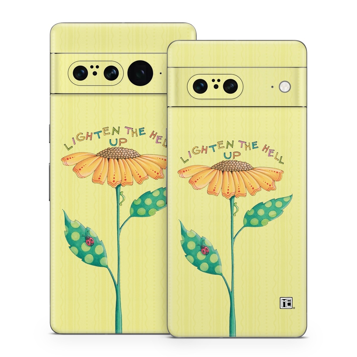 iStyles Google Pixel 7 Series Skin design of Flower, Plant, Botany, Flowering plant, Illustration, Wildflower, Daisy family, Coneflower, Pedicel, with yellow, green, red, black, orange, blue colors, and tagged with signs, flowers, animals, flower, funny, humor, ladybug.