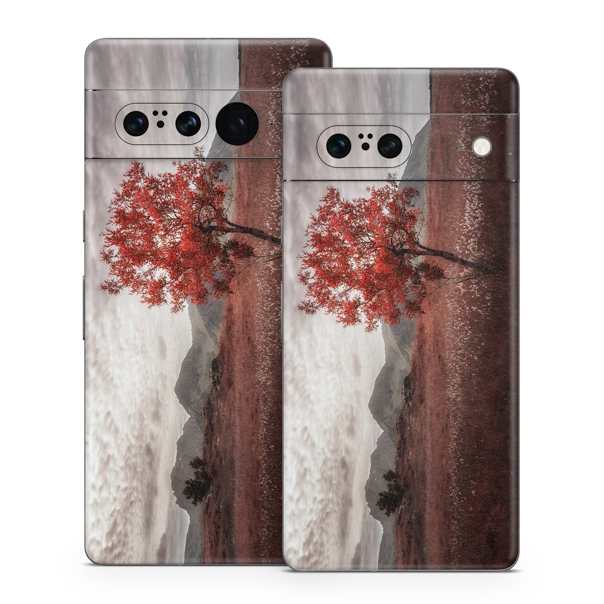 iStyles Google Pixel 7 Series Skin design of Natural landscape, Nature, Tree, Sky, Red, Natural environment, Atmospheric phenomenon, Leaf, Cloud, Woody plant, with black, gray, red colors, and tagged with nature.