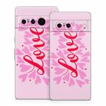iStyles Google Pixel 7 Series Skin design of Plant, Pink, Font, Art, Magenta, Pattern, Logo, Peach, Event, Graphics, with pink, red colors, and tagged with signs, hearts, red, love, hearts.