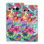 iStyles Google Pixel 7 Series Skin design of Pattern, Floral design, Textile, Pink, Design, Flower, Visual arts, Wildflower, Plant, with blue, pink, purple, red, green, yellow, orange colors, and tagged with patterns, flowers, bright, carpintos, colorful, flowers, spring, summer, teal.