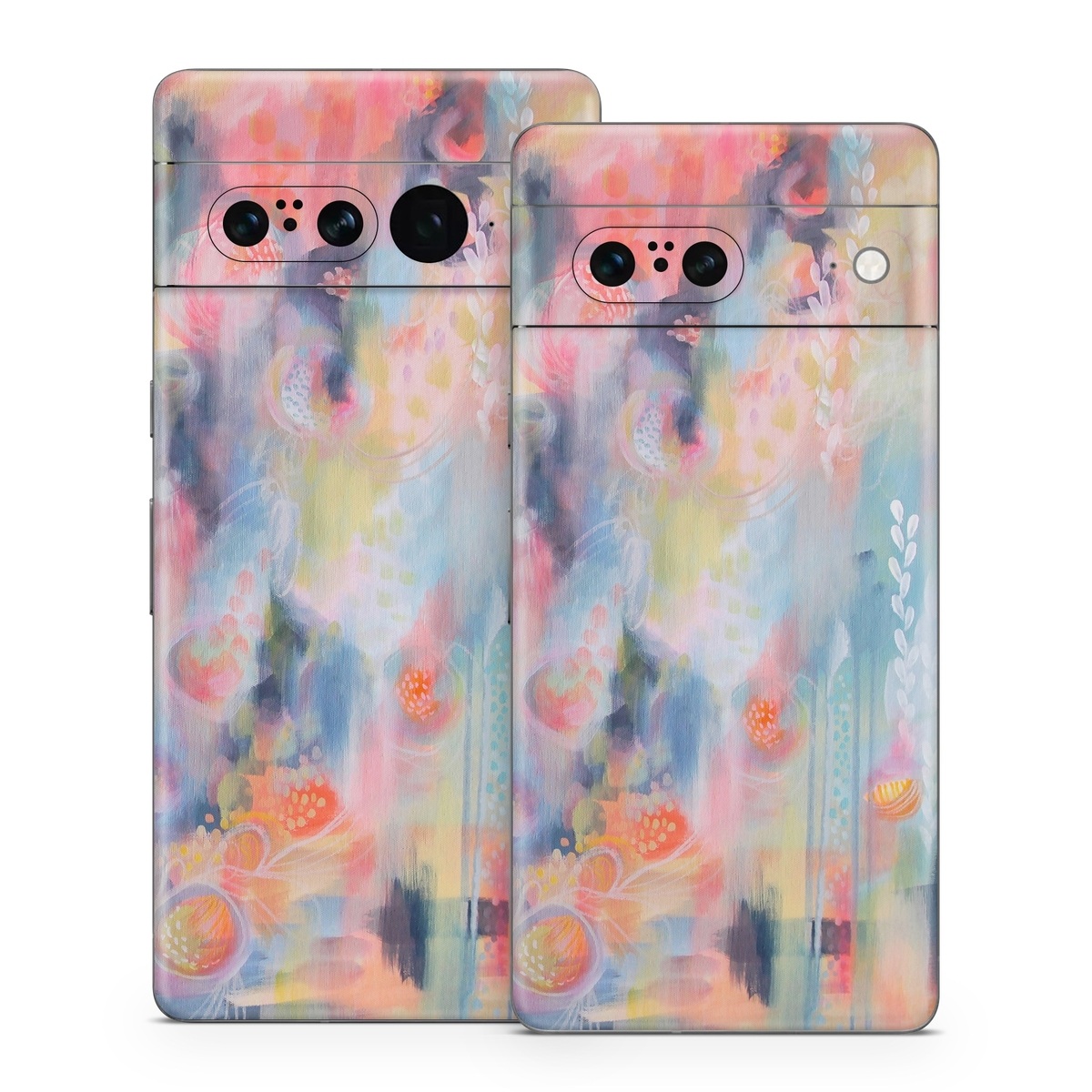 iStyles Google Pixel 7 Series Skin design of Painting, Watercolor paint, Modern art, Acrylic paint, Art, Visual arts, Paint, Artwork, Dye, with blue, pink, orange, yellow, red, white colors, and tagged with flowers, patterns, abstract, abstract, canvas, paint, painting, pastel, watercolor.