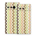 iStyles Google Pixel 7 Series Skin design of Textile, Rectangle, Font, Pink, Aqua, Symmetry, Material property, Circle, Art, Pattern, with white, brown, green, orange colors, and tagged with patterns, waves.