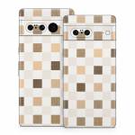 iStyles Google Pixel 7 Series Skin design of Brown, Rectangle, Beige, Textile, Sleeve, Grey, Khaki, Material property, Symmetry, Art, with white, gray, brown colors, and tagged with patterns, checkered, squares, brown, carpet.