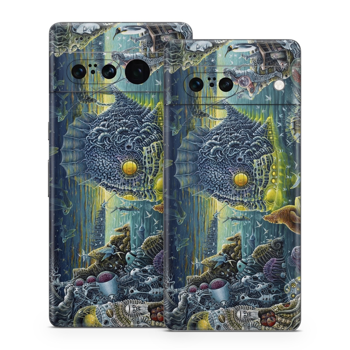 iStyles Google Pixel 7 Series Skin design of Organism, Water, Illustration, Art, Painting, Cg artwork, Fiction, Fictional character, Marine biology, Mythology, with black, gray, blue, green colors, and tagged with animals, fantasy.