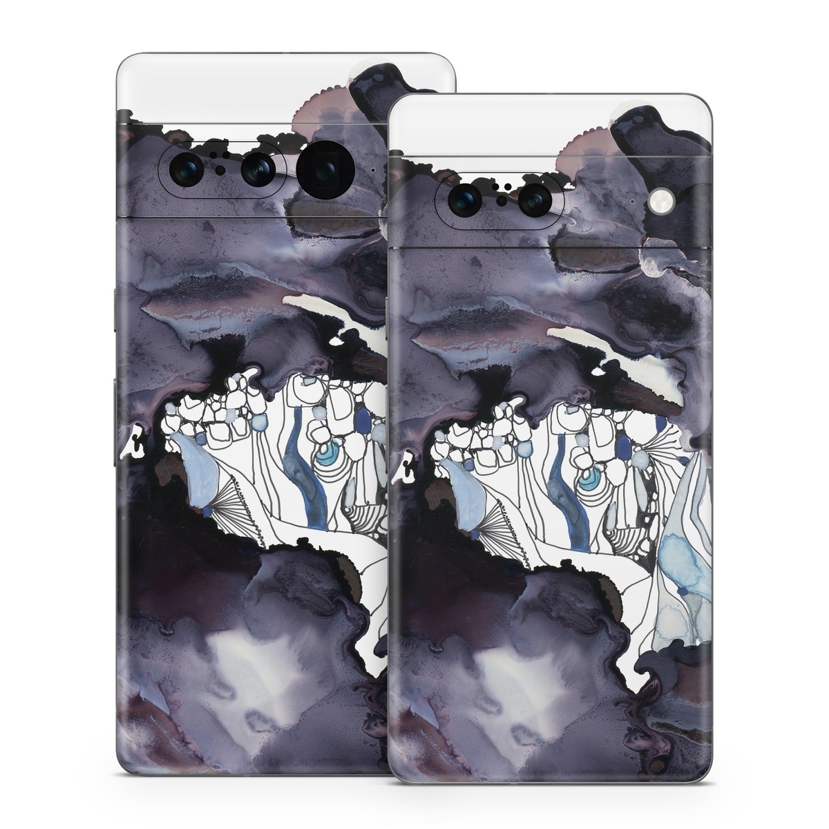 iStyles Google Pixel 7 Series Skin design of Watercolor paint, Illustration, Art, World, Paint, Cg artwork, Drawing, Graphic design, Animation, Rock, with black, purple, white, blue colors, and tagged with abstract, nature, abstract, purple, watercolor.