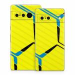 iStyles Google Pixel 7 Series Skin design of Azure, Triangle, Font, Parallel, Symmetry, Pattern, Electric blue, Symbol, Rectangle, Design, with yellow, blue colors, and tagged with patterns, hexagon, pattern, lines.