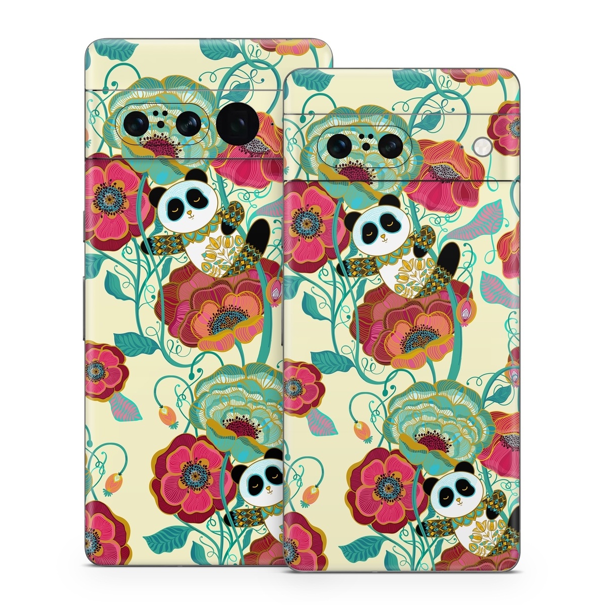 iStyles Google Pixel 7 Series Skin design of Plant, Product, Green, Botany, Art, Flower, Pink, Rectangle, Red, Aqua, with white, red, pink, yellow, green, blue, black colors, and tagged with patterns, flowers, animals, objects, people, golden, pandas, flowers, garden.