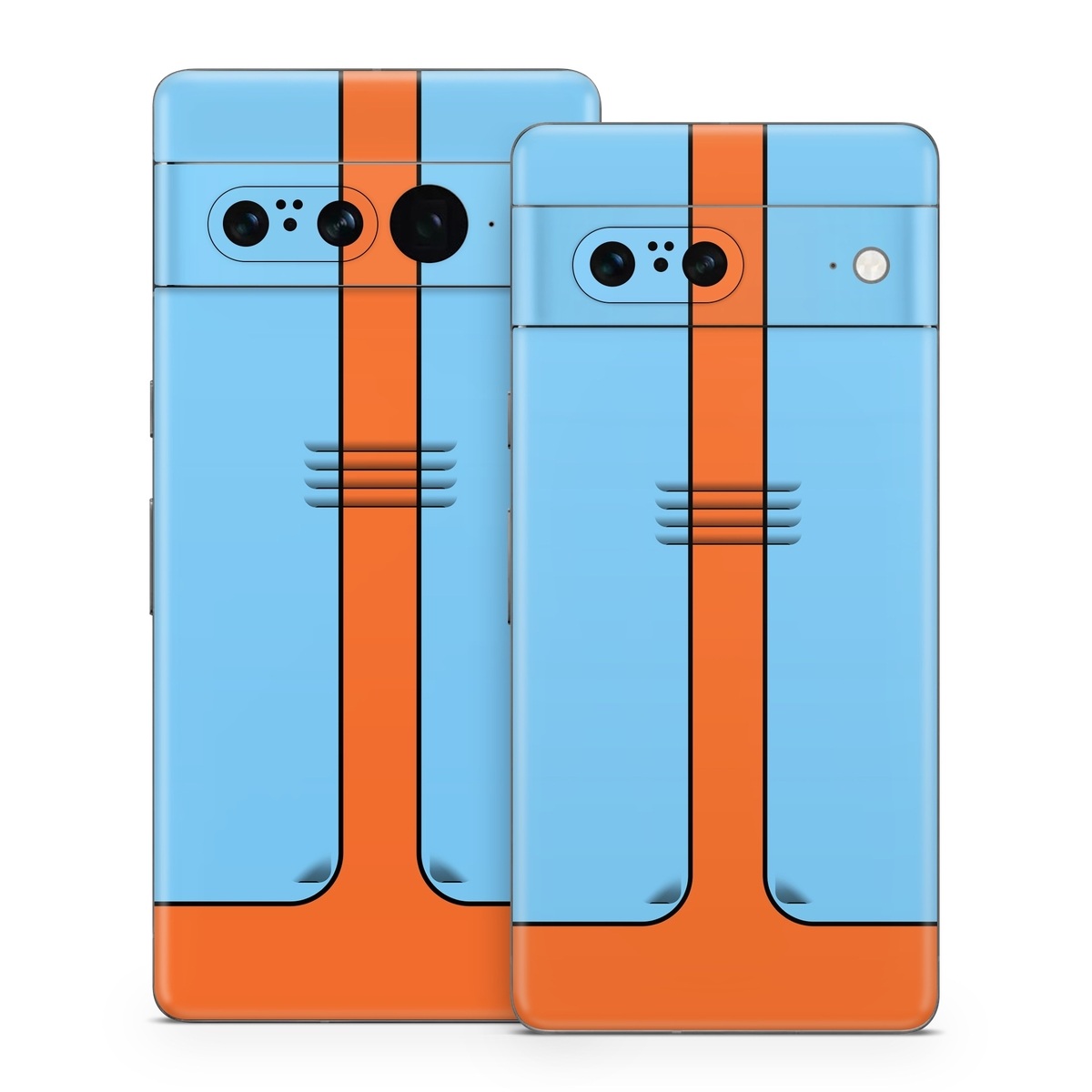 iStyles Google Pixel 7 Series Skin design of Line, with blue, orange, black colors, and tagged with lookslike, space, fantasy, racing, racer.